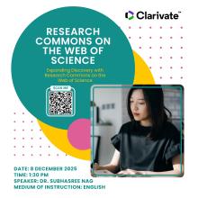 Date & Time Monday, 8 December 2025, 13:30-14:30 Content Why Research Commons? The evolving research landscape and the need for comprehensive discovery What is Research Commons on the Web of Science platform How it integrates open metadata sources with the trusted Web of... more